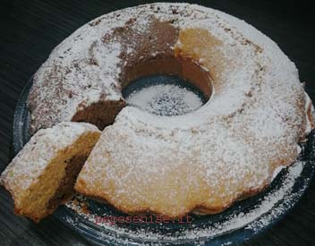 Infornare nel forno preriscaldato per 30/35 minuti circa, fate la prova stecchino, se uscirà asciutto il cambellone è pronto. Sformate, lasciate raffreddare, spolverate con lo zucchero a velo e servite.